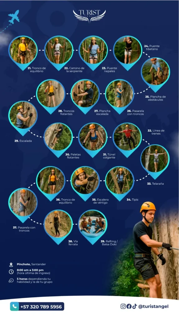 Disfruta de un recorrido cargado de aventura, altura y naturaleza en el corazón del Cañón de las Lajas. Este combo vacacional incluye actividades terrestres, acuáticas y verticales, ideales para quienes buscan un día completo de adrenalina y conexión con el paisaje santandereano.