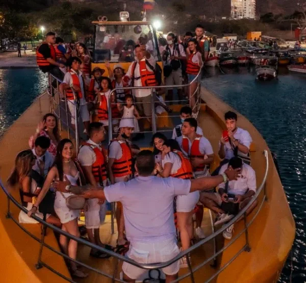 Vive una experiencia única a bordo del moderno Katamarán Tayrona, recorriendo las hermosas playas de Santa Marta mientras disfrutas de música en vivo, cócteles y vistas panorámicas. La fiesta continúa en Inca Inca Beach, donde te recibiremos con un snack de bienvenida, música, y un show folclórico que hará de esta noche algo inolvidable.